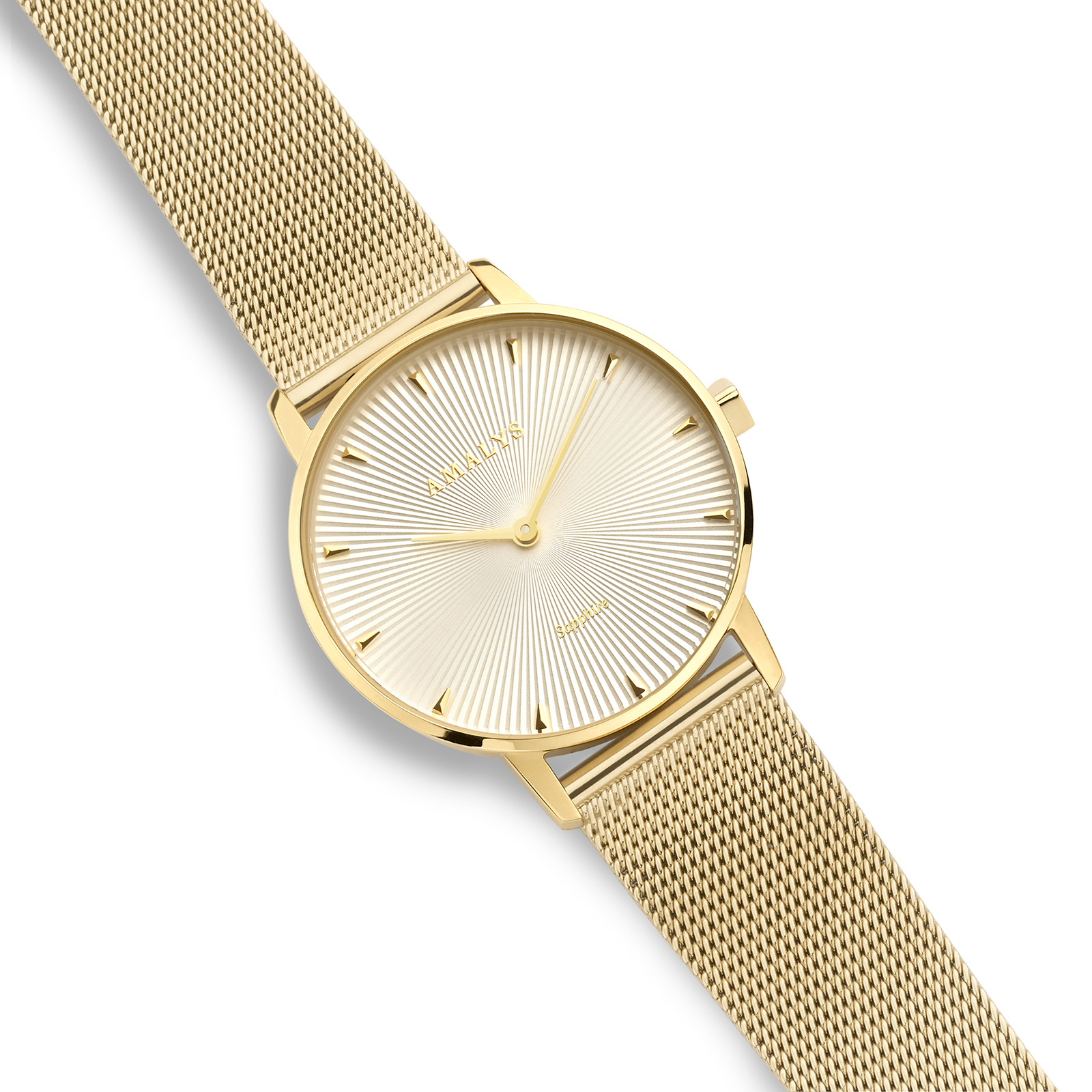 De Amalys Odile uit de Baker collectie straalt tijdloze elegantie uit met een moderne en verfijnde touch. De goudkleurige kast van 33 mm in combinatie met de heldere witte wijzerplaat zorgt voor een frisse en vrouwelijke uitstraling, terwijl de fijne Milanese mesh band het horloge een subtiel en stijlvol karakter geeft. Naast het elegante design staat kwaliteit centraal. Het horloge is voorzien van krasbestendig saffierglas en een betrouwbaar Seiko quartz uurwerk, wat zorgt voor precisie en duurzaamheid. Dankzij het gebruik van hoogwaardig 316L roestvrij staal behoudt het horloge langdurig zijn luxe uitstraling en is het perfect geschikt voor dagelijks gebruik. Met een waterdichtheid van 3 ATM is het horloge bestand tegen spatwater zoals regen en handen wassen. Met de Amalys Odile draag je niet alleen een stijlvol accessoire, maar ook een betekenisvol horloge, elke aankoop draagt bij aan de rechten van een vrouw.