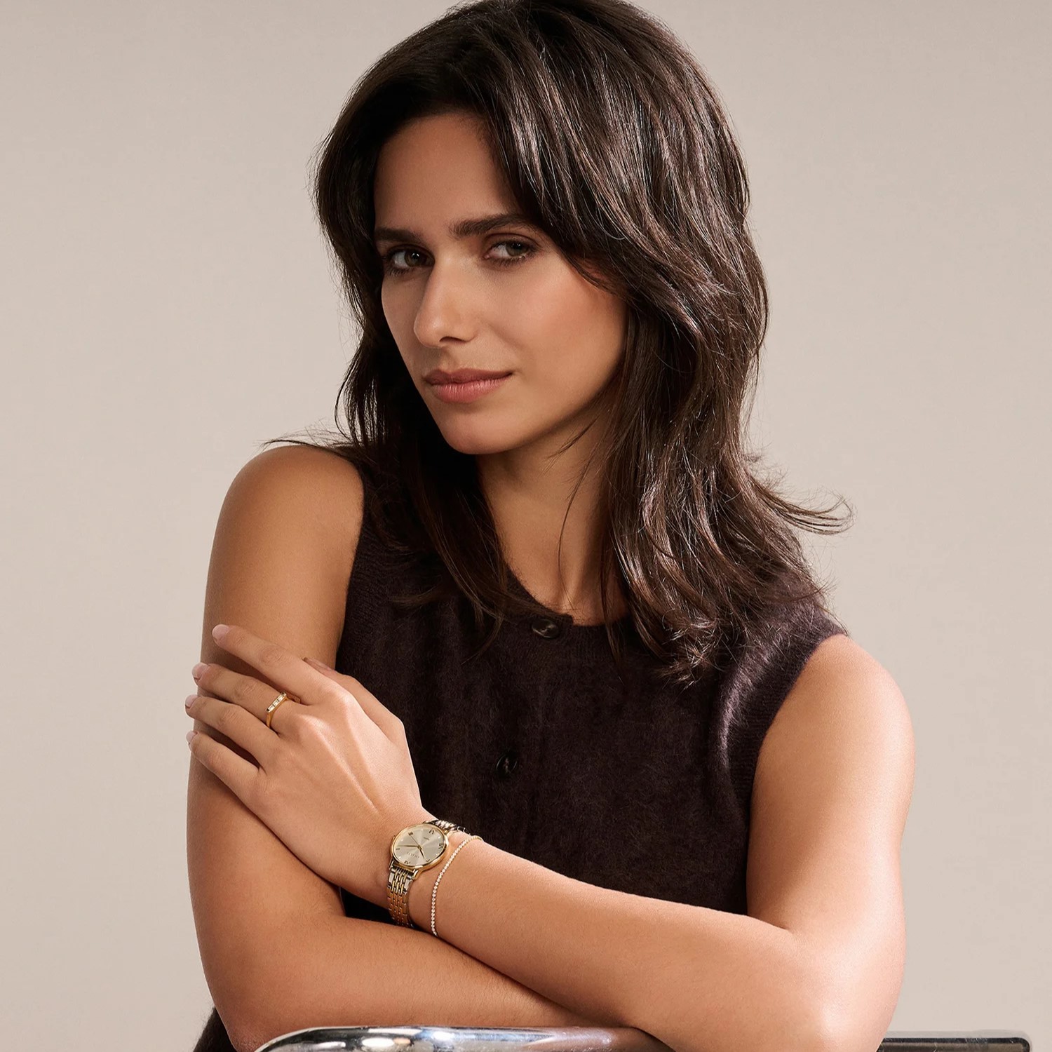 De Amalys Robbie uit de Walker collectie combineert goud- en zilverkleur in een elegant en tijdloos ontwerp. De ronde goudkleurige kast van 30 mm vormt een mooi contrast met de tweekleurige stalen schakelband, wat zorgt voor een moderne en verfijnde uitstraling. De zilverkleurige wijzerplaat vangt het licht subtiel en is afgewerkt met Romeinse cijfers en fonkelende accenten, wat het horloge een luxe en vrouwelijke uitstraling geeft. Dankzij het slanke design draagt het horloge comfortabel en is het perfect voor dagelijks gebruik. Het model is voorzien van krasbestendig saffierglas en een betrouwbaar Seiko quartz uurwerk voor langdurige precisie. Met een waterdichtheid van 5 ATM is het horloge bestand tegen spatwater. Met Amalys kies je bovendien voor een horloge met betekenis, elke aankoop draagt bij aan de rechten van een vrouw.