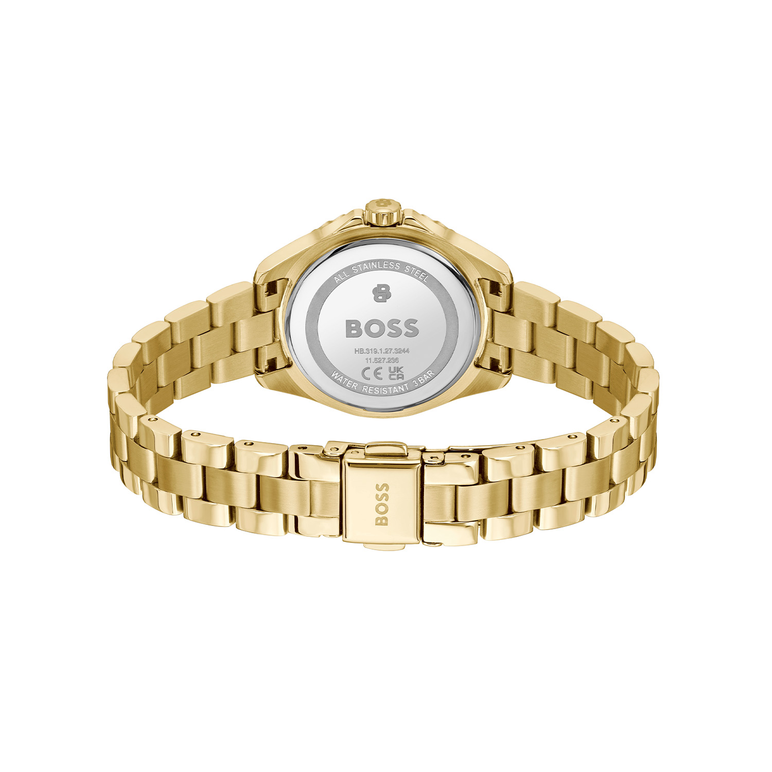 De BOSS SAGE AQUA is een stijlvol dameshorloge waarin sportieve details en een elegante uitstraling samenkomen. De goudkleurige stalen kast van 30 mm geeft het horloge een warme en luxe uitstraling, terwijl de groene sunray wijzerplaat zorgt voor een opvallend en modern kleuraccent. De subtiel bewerkte bezel rondom de kast geeft het ontwerp extra karakter en een verfijnde afwerking. De wijzerplaat wordt beschermd door mineraalglas, dat zorgt voor een heldere en duurzame afwerking. Binnenin werkt een betrouwbaar quartz uurwerk, dat garant staat voor een nauwkeurige tijdsaanduiding. De goudkleurige stalen schakelband sluit mooi aan op de kast en draagt comfortabel dankzij de stevige vouwsluiting. Met een waterbestendigheid van 3 ATM is het horloge geschikt voor dagelijks gebruik en bestand tegen spatwater.