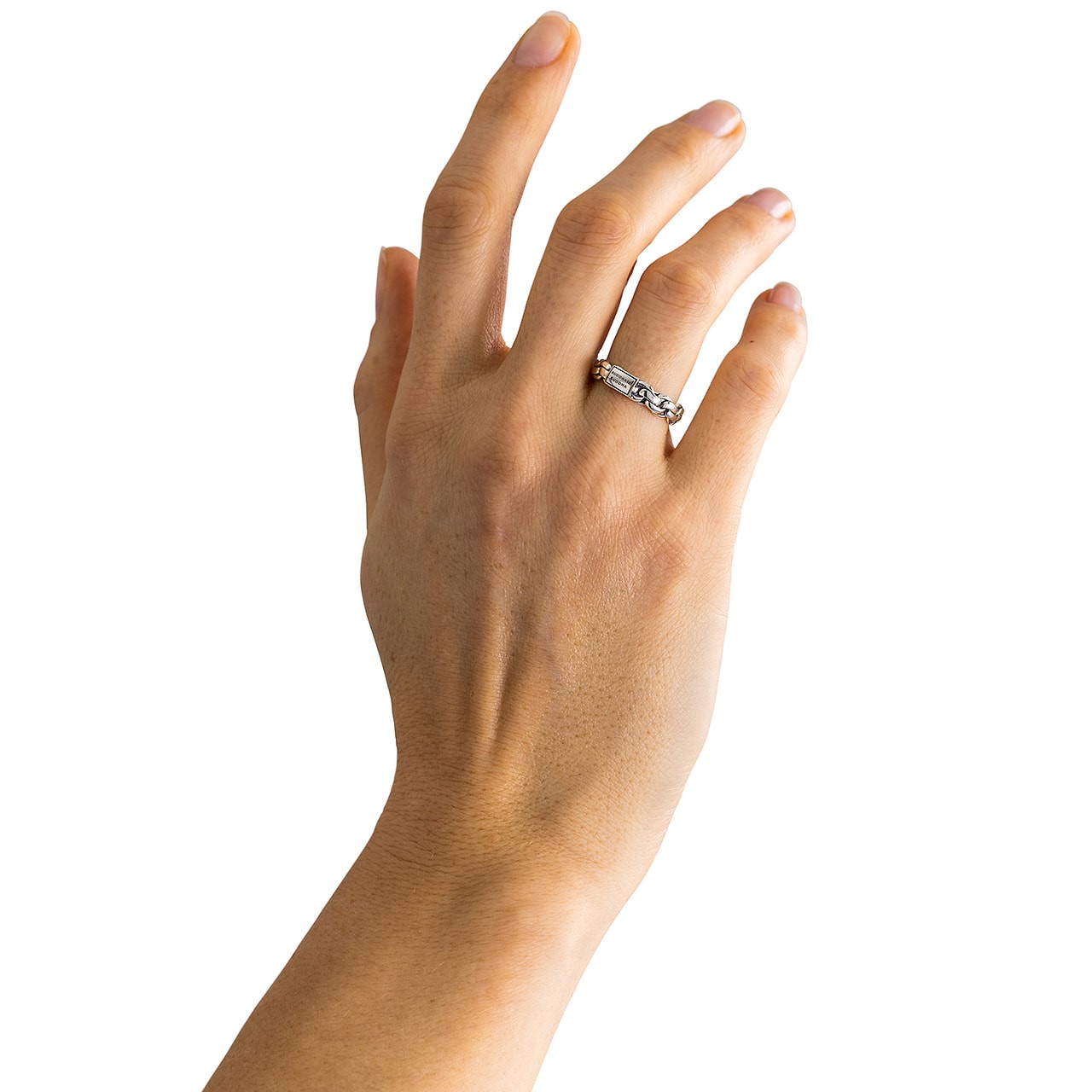 De Venetian Twist ring is een verfijnde interpretatie van een klassiek ontwerp en straalt tijdloze elegantie uit. De karakteristieke Venetiaanse twist zorgt voor een subtiele beweging in het ontwerp en symboliseert verbondenheid en balans. Deze ring staat voor de kracht van verbinding en is een sieraad dat generaties overstijgt. Ontworpen in Amsterdam en met vakmanschap handgemaakt in Zuid Oost Azië van 100% gerecycled 925 sterling zilver. Elk detail weerspiegelt het ambachtelijke karakter waar Buddha to Buddha om bekendstaat.