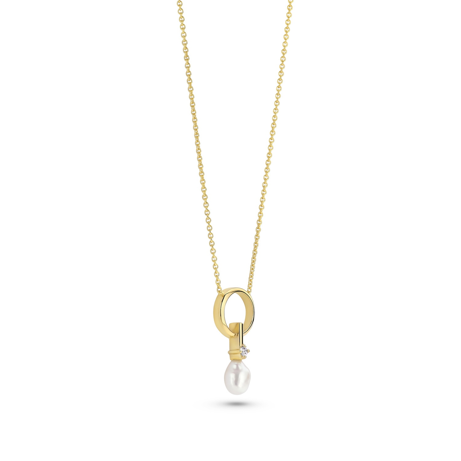 Deze FJF Jewellery ketting Icon Pearl is vervaardigd van verantwoord verkregen 925 sterling zilver en afgewerkt met een hoogwaardige goud vergulde afwerking. De ketting combineert duurzaam gewonnen zoetwaterparels in barokstijl met sprankelende zirkonia en een modern, verfijnd ontwerp. De unieke vorm en natuurlijke glans van de parels geven het sieraad een elegant en onderscheidend karakter, terwijl de zirkonia zorgen voor een subtiele schittering. Deze ketting is anti-allergeen en met grote zorg en aandacht voor detail vervaardigd, wat resulteert in een tijdloos accessoire van hoge kwaliteit dat bij elke gelegenheid gedragen kan worden. De halsketting heeft een lengte van 45 cm en kan dankzij de verstelbare sluiting gedragen worden op 38, 40, 42 en 45 cm.
