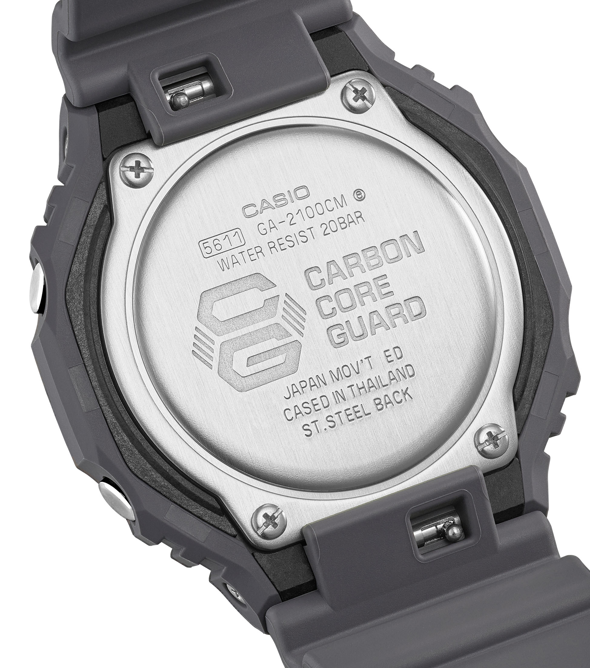 Dit G-Shock horloge uit de Classic Style GA-2100 serie combineert het iconische achthoekige design met een moderne camouflage uitstraling. De kast heeft een afmeting van 48,5 (L) × 45,4 (B) mm en is vervaardigd uit een sterke carbon-harsconstructie, waardoor het horloge licht en bijzonder duurzaam is. De grijze camouflagekast en band worden gecombineerd met een donkere wijzerplaat met metallic accenten, wat zorgt voor een stoere en eigentijdse uitstraling. Het analoog-digitale quartz uurwerk biedt een duidelijke tijdweergave en diverse praktische functies voor dagelijks gebruik. Het horloge is voorzien van mineraalglas en een schokbestendige constructie. Dankzij een waterdichtheid van 20 ATM (Watersport) is dit model geschikt voor actieve momenten.