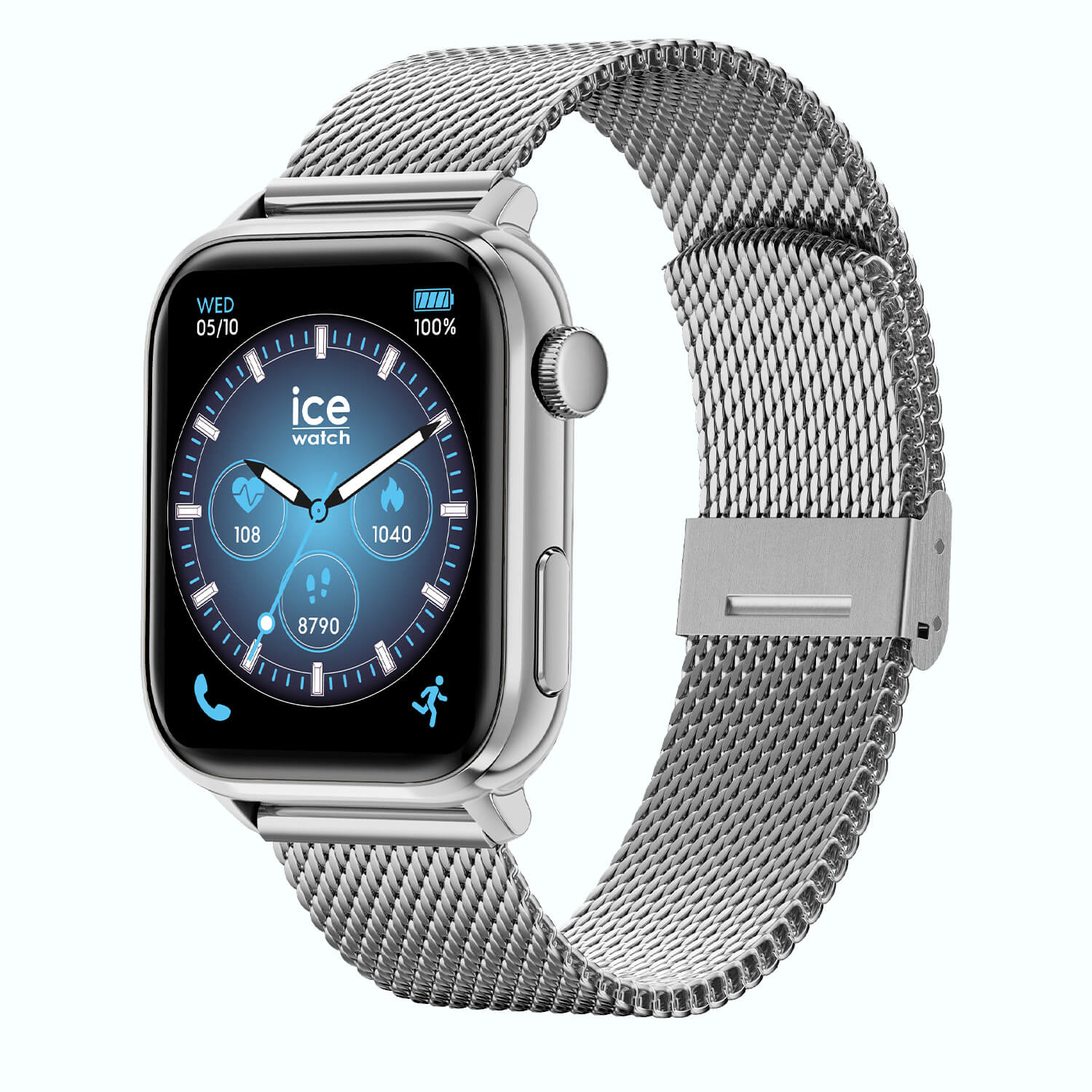 De ICE smart 3.0 van Ice-Watch combineert moderne technologie met een strak en elegant design. Deze smartwatch heeft een zilverkleurige rechthoekige kast van 35 mm en een stijlvolle milanese band van roestvrij staal, wat zorgt voor een comfortabele en verfijnde uitstraling. Het grote 1.78 inch AMOLED touchscreen met een schermformaat van 38 x 44 mm biedt een helder en scherp display dat eenvoudig te bedienen is. Met deze smartwatch ontvang je meldingen van oproepen en berichten direct op je pols en volg je eenvoudig je dagelijkse activiteiten. Daarnaast beschikt het horloge over diverse gezondheids- en sportfuncties, zoals een stappenteller, hartslagmeting en activiteitsregistratie. Dankzij de ingebouwde GPS kun je je routes en beweging nauwkeurig bijhouden. Met IP68 waterbestendigheid is het horloge bovendien geschikt voor dagelijks gebruik.