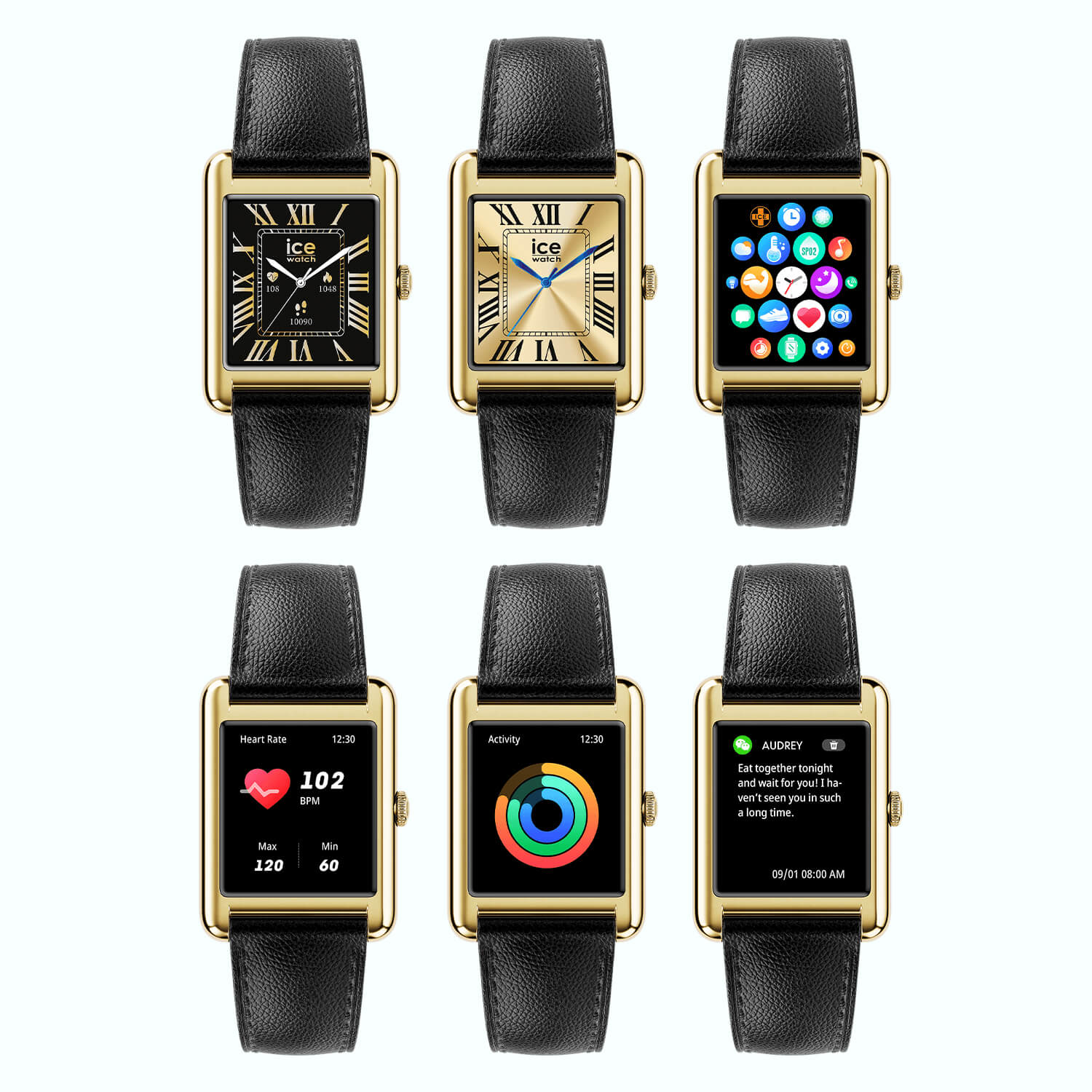 De ICE smart TKS 2.0 combineert een elegant design met moderne smartfuncties. Deze stijlvolle smartwatch heeft een goudkleurige rechthoekige kast van roestvrij staal van 32 x 36 mm en een zwarte leren band met nerfstructuur, wat zorgt voor een luxe en tijdloze uitstraling. Het heldere 1.41 inch AMOLED touchscreen biedt een duidelijke weergave en is eenvoudig te bedienen. Met deze smartwatch ontvang je meldingen van oproepen en berichten direct op je pols en kun je eenvoudig je dagelijkse activiteiten volgen. De ICE smart TKS 2.0 beschikt daarnaast over diverse gezondheids- en sportfuncties, zoals een stappenteller, hartslagmeting en slaapmonitoring. Dankzij de IP68 waterbestendigheid is het horloge geschikt voor dagelijks gebruik. De leren band geeft het horloge een stijlvolle uitstraling, maar is gevoeliger voor water en intensief gebruik dan bijvoorbeeld een siliconen band.
