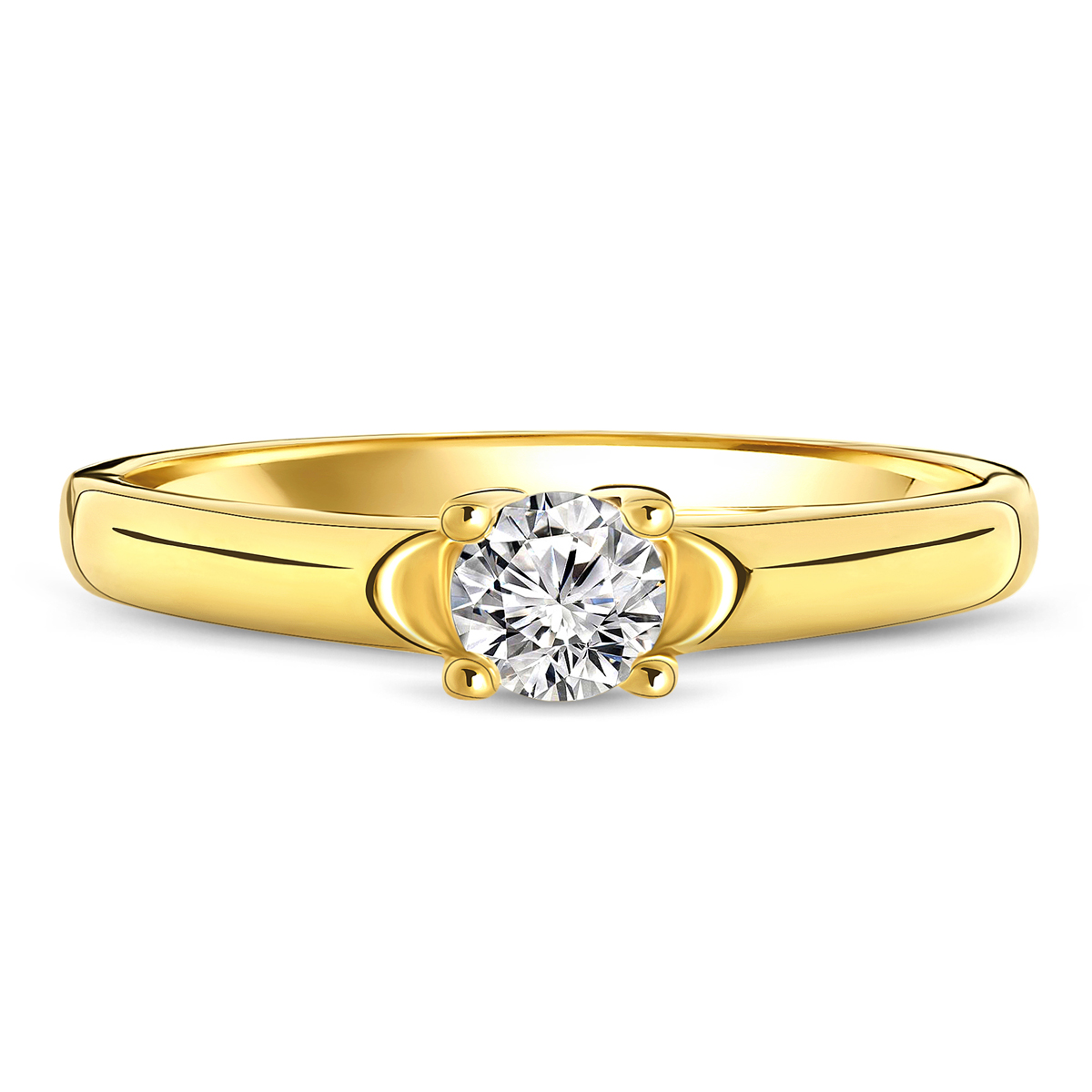 Deze 14 karaats geelgouden ring is gezet met 1 zirkonia steen. Combineer de ring met een elegante armband voor een chique look.