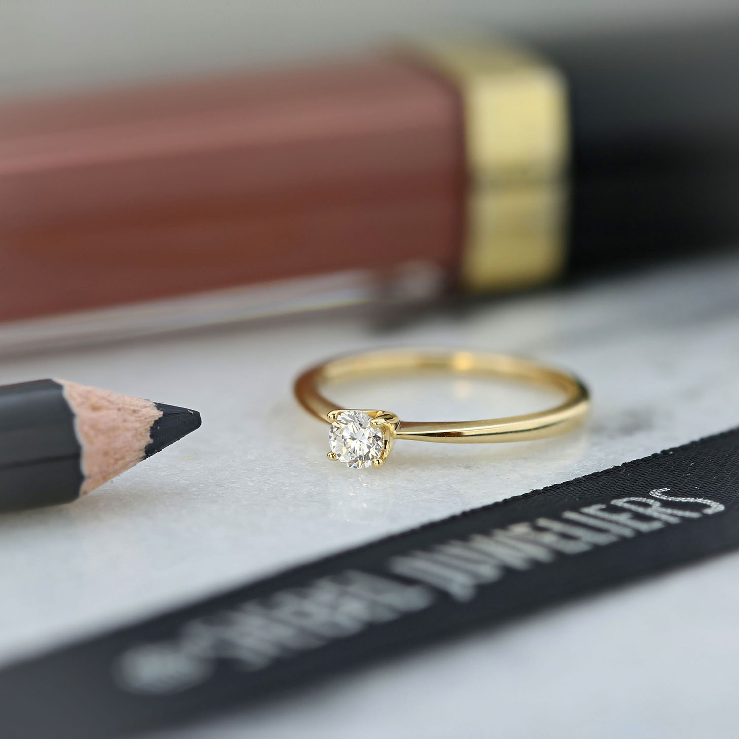 Geelgouden ring uit de Millennium collectie. De ring is vervaardigd uit 14 karaats geelgoud en gezet met een briljant geslepen Lab grown diamant.