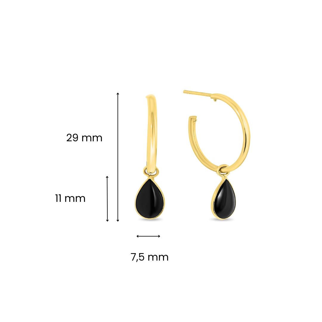 E470-EG882-367-YDeze stijlvolle geelgouden oorhangers uit de Sofia collectie hebben een elegante, diepe zwarte onyx in peervorm. De glanzende steen vormt een krachtig contrast met het warme 14 karaat goud, waardoor een verfijnde en tijdloze uitstraling ontstaat. Met hun lengte van 29 mm zijn deze oorhangers perfect voor zowel dagelijkse elegantie als speciale gelegenheden.