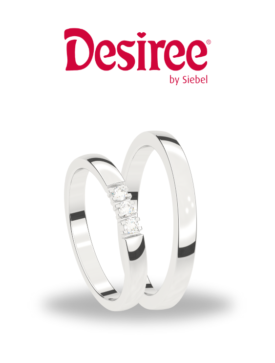 Siebel Juweliers is ook de exclusieve leverancier van de Desiree trouwringen. Desiree biedt een bijna oneindige keuze uit gladde en bewerkte ringen. In 14-karaats witgoud, geelgoud of roségoud, of zelfs een verrassende combinatie daarvan. Glanzend gepolijst of subtiel gematteerd. Met of zonder diamant. Zo vinden jullie binnen de collectie van Desiree altijd precies de ringen die aansluiten bij jullie smaak en die perfect zullen passen bij jullie eigen liefdesverhaal.