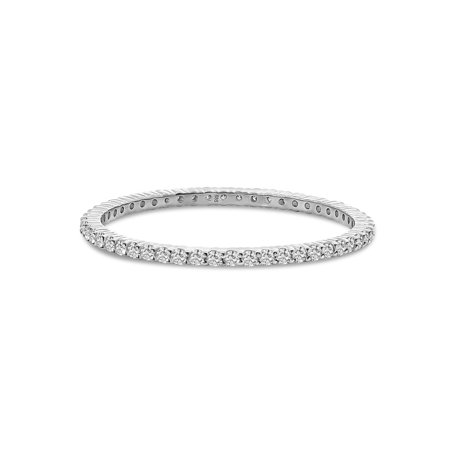 Deze verfijnde diamanten ring uit de Memoire collectie is vervaardigd uit 14 karaat witgoud en volledig gezet met 50 briljant geslepen diamanten. Perfect voor een chique touch bij zowel een feestelijke avondoutfit als een zakelijke gelegenheid. Voor iemand wie klassieke elegantie en een subtiele schittering waardeert. Ideaal als verlovingsring of trouwring dankzij de oneindige rij fonkelende stenen. Perfect als cadeau bij een jubileum of bijzondere mijlpaal. Deze ring zal haar hart veroveren.